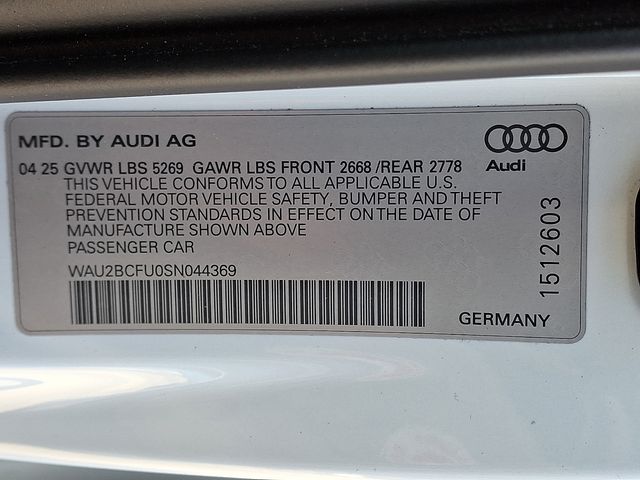 Certified. Glacier White Metallic 2025 Audi A5 2.0T Premium Plus quattro quattro 7-Speed Automatic S tronic 2.0L 4-Cylinder TFSI RECENT HOFFMAN TRADE, CLEAN CAR FAX...NO ACCIDENTS, AUDI CERTIFIED, SERVICE RECORDS AVAILABLE, ONE OWNER, NAVIGATION GPS NAV, SUNROOF MOONROOF, REMAINDER OF FACTORY WARRANTY, 6 MONTH OR 6,000 POWERTRAIN WARRANTY, 19" Wheel Package, ABS brakes, Adaptive Cruise Assist, Alloy wheels, Animation For Taillights, Bang & Olufsen Sound System with 3D Sound, Black Warm Weather Package, Compass, Dynamic Interaction Light, Electronic Stability Control, Front Bucket Seats, Front Center Armrest, Front dual zone A/C, Head-Up Display, Heated and Ventilated Front Sport Seats, Heated door mirrors, Heated Front Bucket Seats, Heated front seats, Heated Steering Wheel with Hands-on Detection, Illuminated entry, LED Headlights Plus with Digital DRL, LED Interior Lighting Pro Package, Low tire pressure warning, Manual Rear Side Window Sunshades, Navigation System, Panoramic Glass with Variable Light Control, Park Assist Plus, Power Liftgate, Power passenger seat, Premium Plus, Remote keyless entry, Split folding rear seat, Top View Camera System, Traction control, USB Power Delivery (2x60W Front and 2x100W Rear), Wheels: 19" 5-Arm-Aero Design Bi-Color Finish.