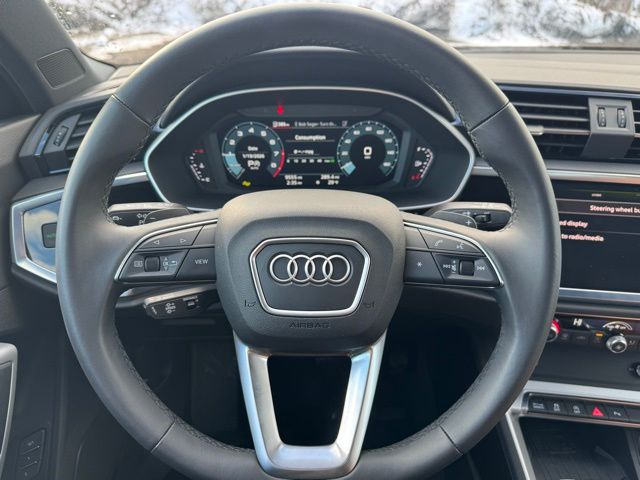 PREMIUM PLUS PKG, ONE OWNER, CLEAN CARFAX...NO ACCIDENTS, AUDI CERTIFIED, 6 MONTHS/6000 MILES POWERTRAIN WARRANTY, 10 Speakers, 4-Wheel Disc Brakes, ABS brakes, Air Conditioning, Alloy wheels, AM/FM radio, Audi Advanced Key, Audi Beam-Rings, Audi Guard All-Weather Mats, Audi smartphone interface (Apple CarPlay/Android Auto), Auto High-beam Headlights, Automatic temperature control, Brake assist, Bumpers: body-color, Convenience Package, Delay-off headlights, Driver door bin, Driver vanity mirror, Dual front impact airbags, Dual front side impact airbags, Electronic Stability Control, Emergency communication system: Audi connect CARE, Exterior Parking Camera Rear, Four wheel independent suspension, Front anti-roll bar, Front Bucket Seats, Front Center Armrest, Front dual zone A/C, Front fog lights, Front reading lights, Fully automatic headlights, Heated door mirrors, Heated Front Bucket Seats, Heated front seats, Illuminated entry, Knee airbag, Leather Seating Surfaces, Leather Shift Knob, Leather steering wheel, LED Interior Lighting Package, LED Interior Lighting Plus Package, Low tire pressure warning, Occupant sensing airbag, Outside temperature display, Overhead airbag, Overhead console, Panic alarm, Passenger door bin, Passenger vanity mirror, Power door mirrors, Power driver seat, Power Liftgate, Power moonroof: Panoramic, Power passenger seat, Power steering, Power windows, Premium Plus Package, Radio data system, Radio: Audi Sound System, Rear air conditioning, Rear anti-roll bar, Rear reading lights, Rear seat center armrest, Rear window defroster, Remote keyless entry, SiriusXM with 360L (3 Months Trial), SONOS Premium Sound System with 3D Sound, Speed control, Speed-sensing steering, Split folding rear seat, Spoiler, Steering wheel mounted audio controls, Tachometer, Telescoping steering wheel, Tilt steering wheel, Top View Camera System, Traction control, Trip computer, Turn signal indicator mirrors. CARFAX One-Owner. Clean CARFAX. Certified. Chronos Gray Metallic 2025 Audi Q3 Premium Plus S Line quattro quattro 8-Speed Automatic with Tiptronic 2.0L 4-Cylinder TFSI