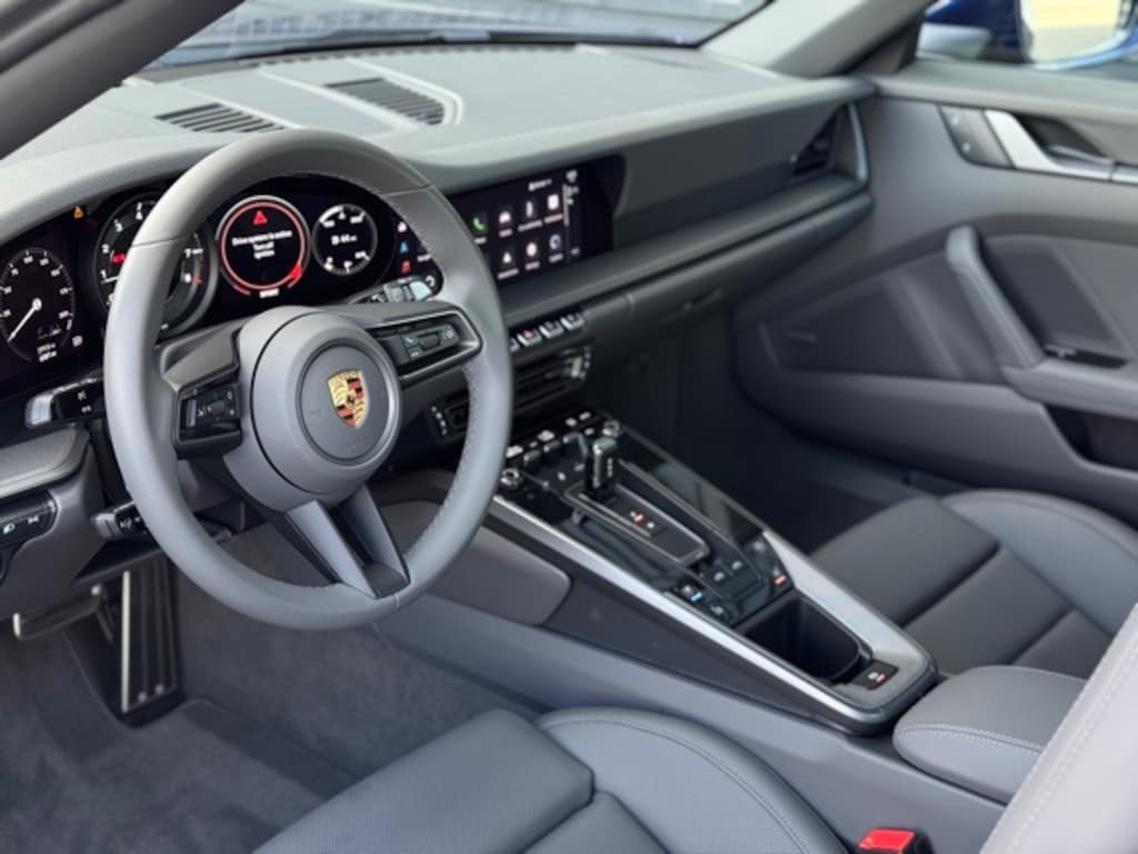 Porsche InnoDrive incl. Adaptive Cruise Control (ACC) and Active Lane Keep (ALK), AWD, 14-Way Power Sport Seats w/Memory Package, 4-Wheel Disc Brakes, 8 Speakers, Adaptive Cruise Control (ACC), Adaptive suspension, Air Conditioning, Alloy wheels, Ambient Lighting, Auto-dimming door mirrors, Auto-dimming Rear-View mirror, Automatic temperature control, BOSE Surround Sound System, Brake assist, Bumpers: body-color, Convertible roof lining, Delay-off headlights, Deletion of Model Designation on Rear, Driver door bin, Driver vanity mirror, Dual front impact airbags, Dual front side impact airbags, Electronic Stability Control, Four wheel independent suspension, Front anti-roll bar, Front Axle Lift System, Front Bucket Seats, Front Center Armrest, Front dual zone A/C, Front reading lights, Fully automatic headlights, Garage door transmitter: HomeLink, Glass rear window, Heated door mirrors, Heated front and rear seats, Heated Steering Wheel, Illuminated entry, Integrated roll-over protection, Ionizer, Lane Change Assist (LCA), Leather Seat Trim, Leather steering wheel, Low tire pressure warning, Navigation system: Porsche Communication Management (PCM), Occupant sensing airbag, Outside temperature display, Overhead airbag, Overhead console, Park Assist (Front & Rear) Incl. Surround View, Passenger door bin, Passenger vanity mirror, Porsche Ceramic Composite Brake (PCCB), Porsche Communication Management, Porsche Dynamic Light System Plus (PDLS+), Power convertible roof, Power door mirrors, Power driver seat, Power Folding Exterior Mirrors, Power passenger seat, Power steering Plus, Power windows, Premium Package, Radio data system, Rain sensing wipers, Rear anti-roll bar, Rear fog lights, Rear window defroster, Remote keyless entry, Security system, Speed control, Split folding rear seat, Spoiler, Sport steering wheel, Steering wheel mounted audio controls, Storage Package, Surround View, Tachometer, Telescoping steering wheel, Tilt steering wheel, Traction control, Trip computer, Under Door Puddle Light Projectors, Variably intermittent wipers, Ventilated Front Seats, Wheels: 20" Front/21" Rear Carrera S. CARFAX One-Owner. Clean CARFAX. Certified. Gentian Blue Metallic 2023 Porsche 911 Targa 4S AWD 8-Speed Porsche Doppelkupplung (PDK) 3.0L H6 Turbocharged DOHC 24V LEV3-ULEV70 443hp