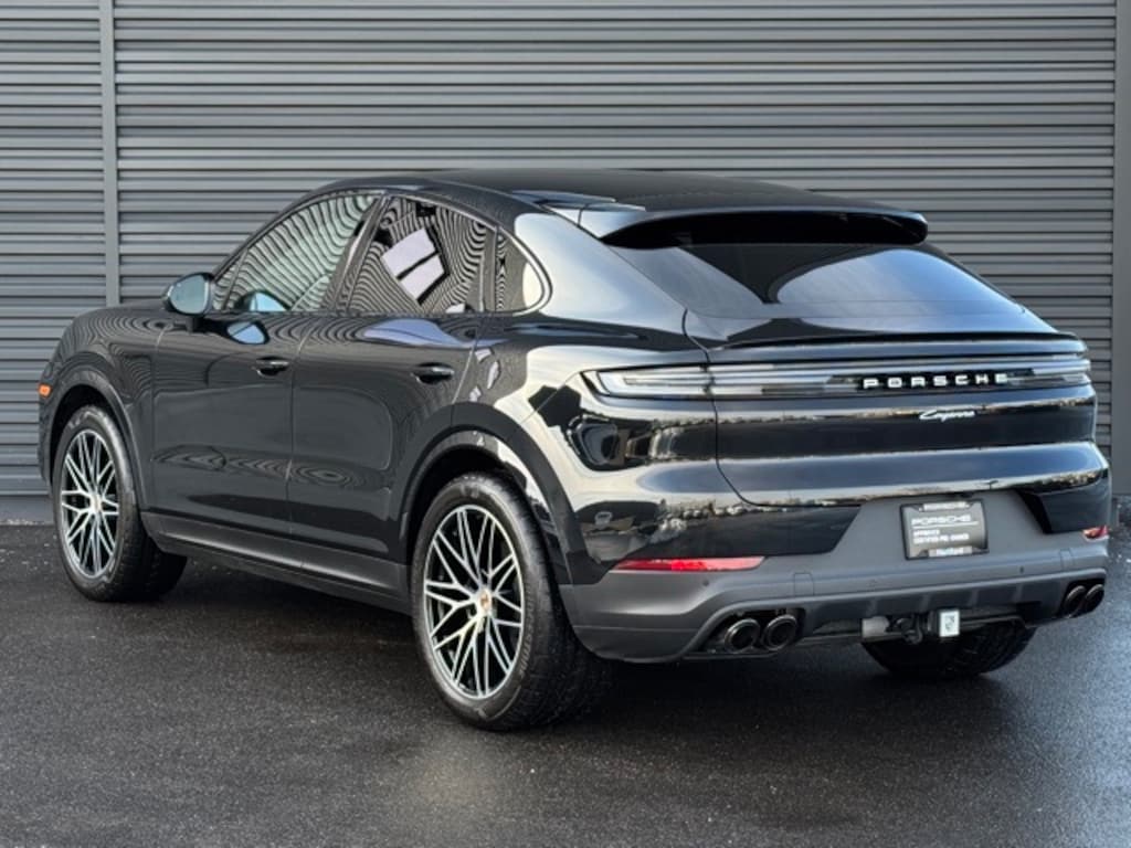 CLEAN CAR FAX... NO ACCIDENTS, HOFFMAN NEW CAR TRADE, PORSCHE CERTIFIED, ONE OWNER, 6 MONTHS 6000 MILES POWERTRAIN WARRANTY, 14-Way Power Seats w/Comfort Memory, 4-Zone Climate Control, Adaptive Cruise Control w/Lane Keep Assist (LKA), Air Quality System, BOSE Surround Sound System, Exclusive Design Taillights, Front Ventilated Seats, HD-Matrix Design LED Headlights, Heated GT Sport Steering Wheel in Leather, Passenger Display, Porsche Crest on Front Headrests, Premium Package Plus, Rear Comfort Seats (2+1), Rear Heated Seats, Sport Tailpipes in Dark Bronze, Trailer Hitch w/o Tow Ball, Wheels: 21" RS Spyder Design. CARFAX One-Owner. Clean CARFAX. Certified. Chromite Black Metallic 2025 Porsche Cayenne Coupe AWD 8-Speed Automatic with Tiptronic 3.0L V6