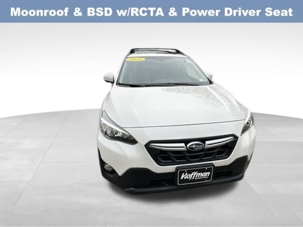CARFAX One-Owner. Subaru Crosstrek Premium 2023 4-Wheel Disc Brakes, 6-Way Power Driver's Seat, ABS brakes, Air Conditioning, Alloy wheels, Anti-whiplash front head restraints, Automatic temperature control, Blind Spot Detection w/Rear Cross-Traffic Alert, Brake assist, CD player, Driver vanity mirror, Dual front impact airbags, Dual front side impact airbags, Electronic Stability Control, Emergency communication system: STARLINK Safety and Security (Subscription Required), Exterior Parking Camera Rear, EyeSight System, Four wheel independent suspension, Front fog lights, Front reading lights, Fully automatic headlights, Heated door mirrors, Heated Front Bucket Seats, Illuminated entry, Keyless Access w/Push-Button Start, Knee airbag, Leather Shift Knob, Moonroof & BSD w/RCTA & Power Driver Seat, Occupant sensing airbag, Outside temperature display, Overhead airbag, Overhead console, Panic alarm, Passenger vanity mirror, Power door mirrors, Power Moonroof, Power steering, Power windows, Radio: Subaru STARLINK 6.5" Multimedia Plus System, Rear window defroster, Rear window wiper, Remote keyless entry, Speed control, Speed-sensing steering, Split folding rear seat, STARLINK/Apple CarPlay/Android Auto, Steering wheel mounted audio controls, Tachometer, Telescoping steering wheel, Tilt steering wheel, Traction control, Trip computer, Variably intermittent wipers. Odometer is 9470 miles below market average!