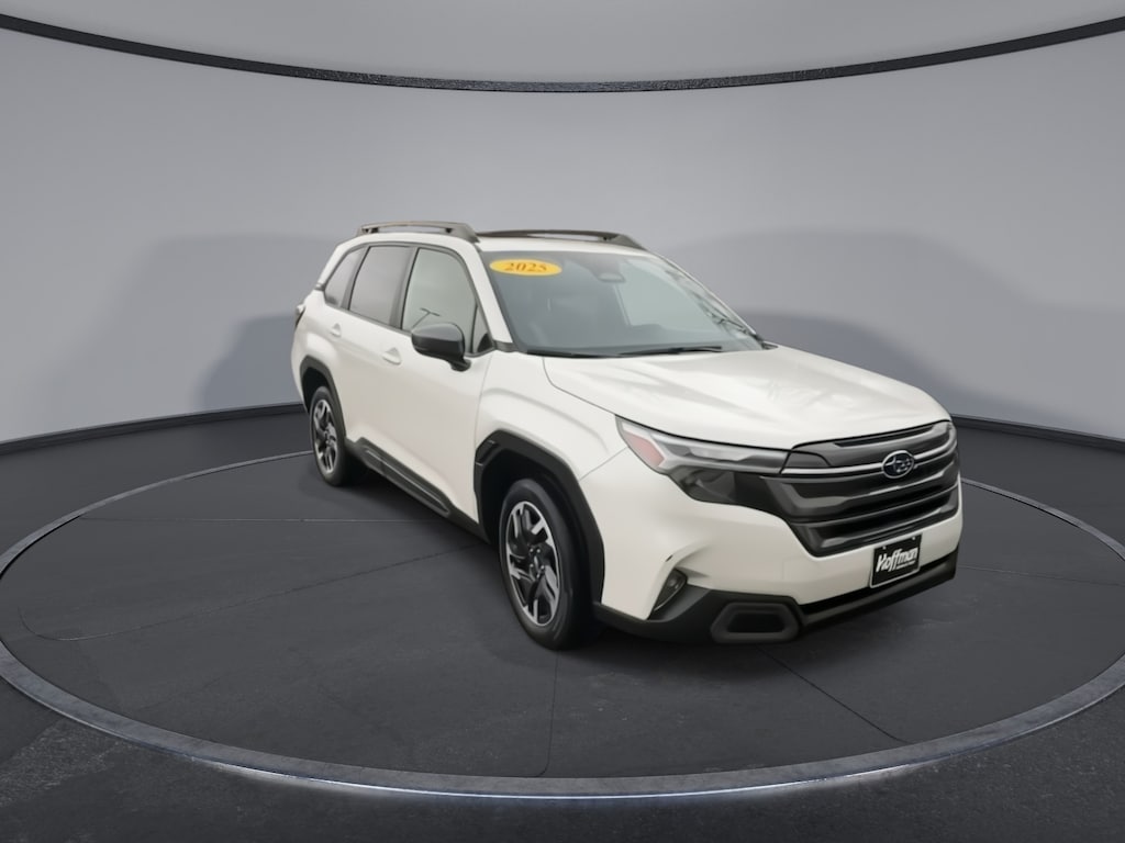 CARFAX One-Owner. Clean CARFAX. Subaru Forester Limited 2025 4-Wheel Disc Brakes, ABS brakes, Air Conditioning, Alloy wheels, AM/FM radio: SiriusXM with 360L, Anti-whiplash front head restraints, Auto High-beam Headlights, Automatic temperature control, Brake assist, Driver vanity mirror, Dual front impact airbags, Dual front side impact airbags, Electronic Stability Control, Emergency communication system: MySubaru Safety (3-year free trial), Exterior Parking Camera Rear, Four wheel independent suspension, Front dual zone A/C, Front fog lights, Front reading lights, Fully automatic headlights, Heated door mirrors, Heated Front Bucket Seats, Heated steering wheel, Illuminated entry, Knee airbag, Leather steering wheel, Low tire pressure warning, Occupant sensing airbag, Outside temperature display, Overhead airbag, Overhead console, Panic alarm, Passenger vanity mirror, Perforated Leather-Trimmed Upholstery, Power door mirrors, Power driver seat, Power Liftgate, Power moonroof: Panoramic, Power passenger seat, Power steering, Power windows, Rear window defroster, Rear window wiper, Remote keyless entry, Speed control, Speed-sensing steering, Split folding rear seat, Steering wheel mounted audio controls, Tachometer, Telescoping steering wheel, Tilt steering wheel, Traction control, Trip computer, Turn signal indicator mirrors, Variably intermittent wipers. Odometer is 1179 miles below market average!