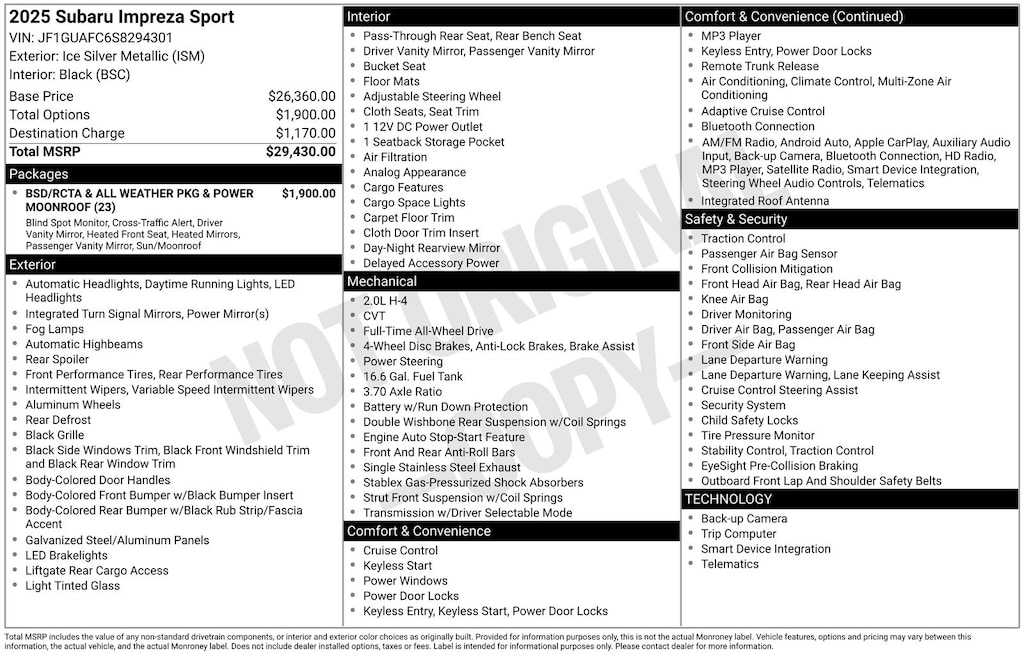 Prices shown are manufacturer suggested retail prices only and do not include taxes, license, or doc fee. Manufacturer vehicle accessory costs, labor and installation vary. Please contact us with any questions.