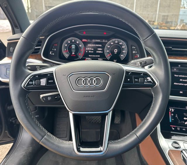 PREMIUM PLUS PKG, BOUGHT, SERVICED AND TRADED AT HOFFMAN, ONE OWNER, RECENT HOFFMAN TRADE, SUNROOF MOONROOF, AUDI CERTIFIED, 10 Speakers, 4-Wheel Disc Brakes, ABS brakes, Air Conditioning, Alloy wheels, AM/FM radio: SiriusXM w/ 360L, Auto High-beam Headlights, Auto tilt-away steering wheel, Auto-dimming door mirrors, Auto-dimming Rear-View mirror, Automatic temperature control, Brake assist, Bumpers: body-color, Compass, Delay-off headlights, Driver door bin, Driver vanity mirror, Dual front impact airbags, Dual front side impact airbags, Electronic Stability Control, Emergency communication system: Audi connect CARE (limited time subscription), Exterior Parking Camera Rear, Four wheel independent suspension, Front anti-roll bar, Front Bucket Seats, Front Center Armrest, Front dual zone A/C, Front fog lights, Front reading lights, Garage door transmitter: HomeLink, Genuine wood console insert, Genuine wood dashboard insert, Genuine wood door panel insert, Heated door mirrors, Heated Front Seats, Heated front seats, Illuminated entry, Knee airbag, Leather Seating Surfaces, Leather Shift Knob, Leather steering wheel, Low tire pressure warning, Memory seat, Navigation system: MMI Navigation plus, Occupant sensing airbag, Outside temperature display, Overhead airbag, Overhead console, Panic alarm, Passenger door bin, Passenger vanity mirror, Power door mirrors, Power driver seat, Power moonroof, Power passenger seat, Power steering, Power windows, Radio data system, Radio: Audi MMI Nav Plus w/MMI Touch Response, Rain sensing wipers, Rear air conditioning, Rear anti-roll bar, Rear reading lights, Rear seat center armrest, Rear side impact airbag, Rear window defroster, Remote keyless entry, Security system, Speed control, Speed-sensing steering, Speed-Sensitive Wipers, Split folding rear seat, Steering wheel memory, Steering wheel mounted audio controls, Tachometer, Telescoping steering wheel, Tilt steering wheel, Traction control, Trip computer, Turn signal indicator mirrors, Variably intermittent wipers, Wheels: 19" Bi-Color Finish 5-Double-Spoke-Design. CARFAX One-Owner. Firmament Blue Metallic 2023 Audi A6 quattro quattro 7-Speed Automatic 3.0L V6 Turbocharged DOHC 24V LEV3-ULEV70 335hp