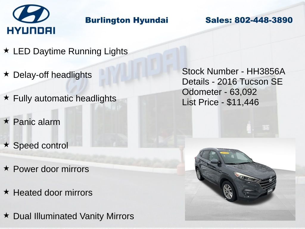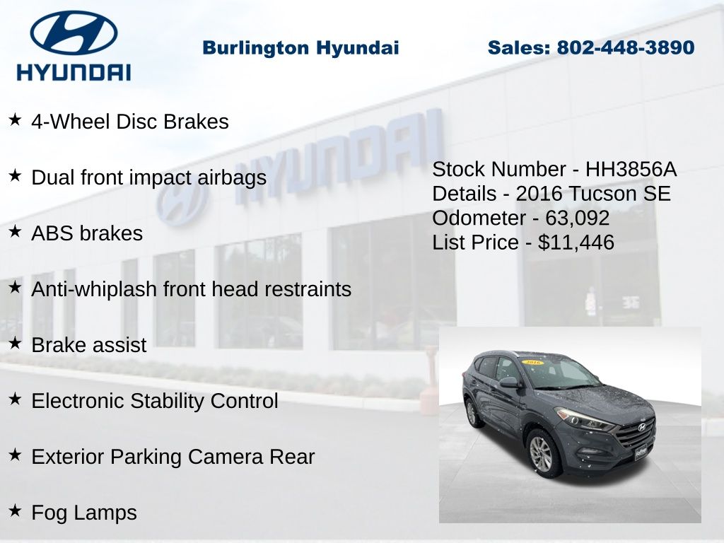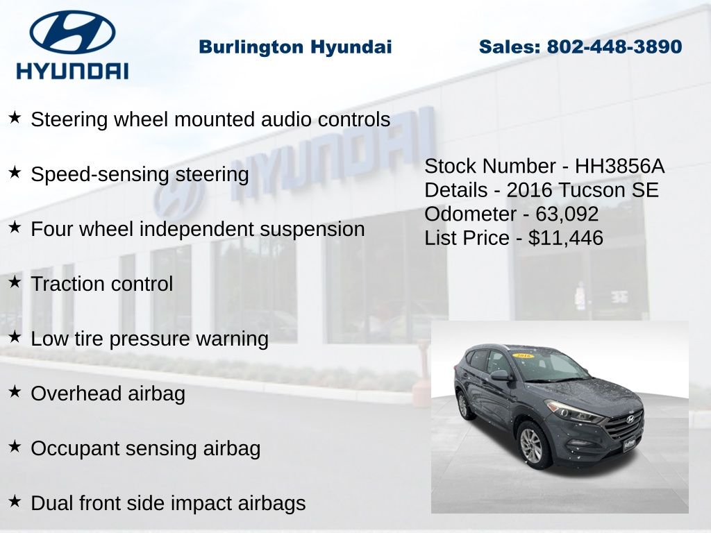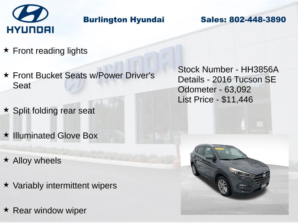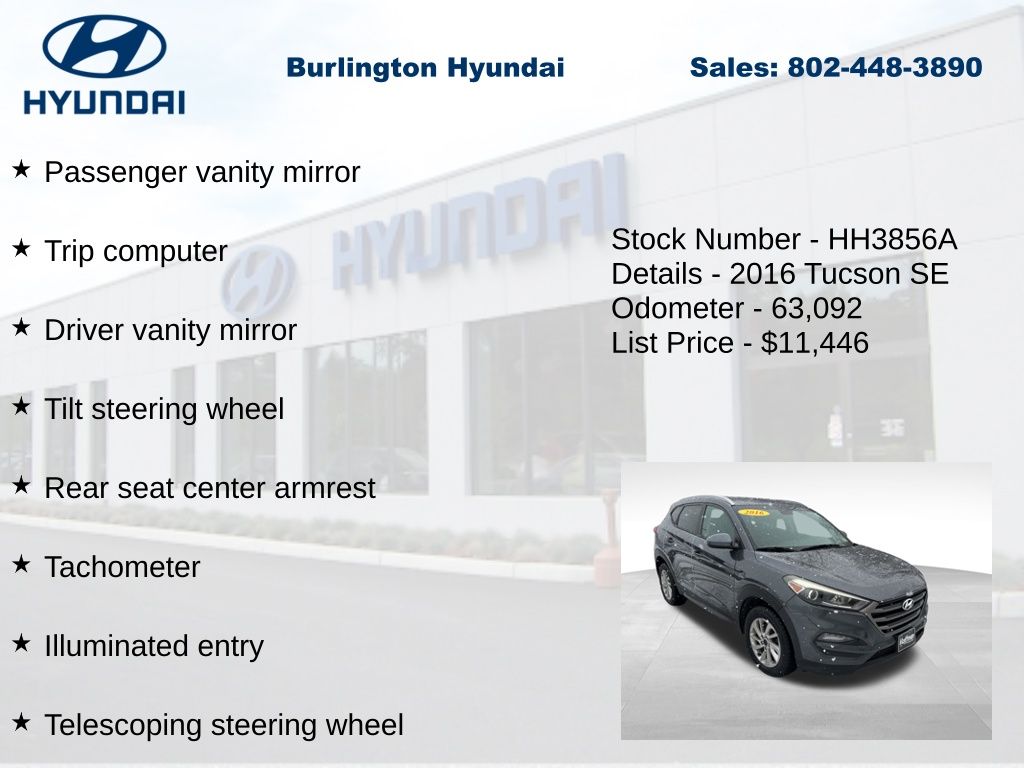 2016 Tucson SE 2.0L DOHC AWD 21/26 City/Highway MPG Priced below KBB Fair Purchase Price! Odometer is 32901 miles below market average!