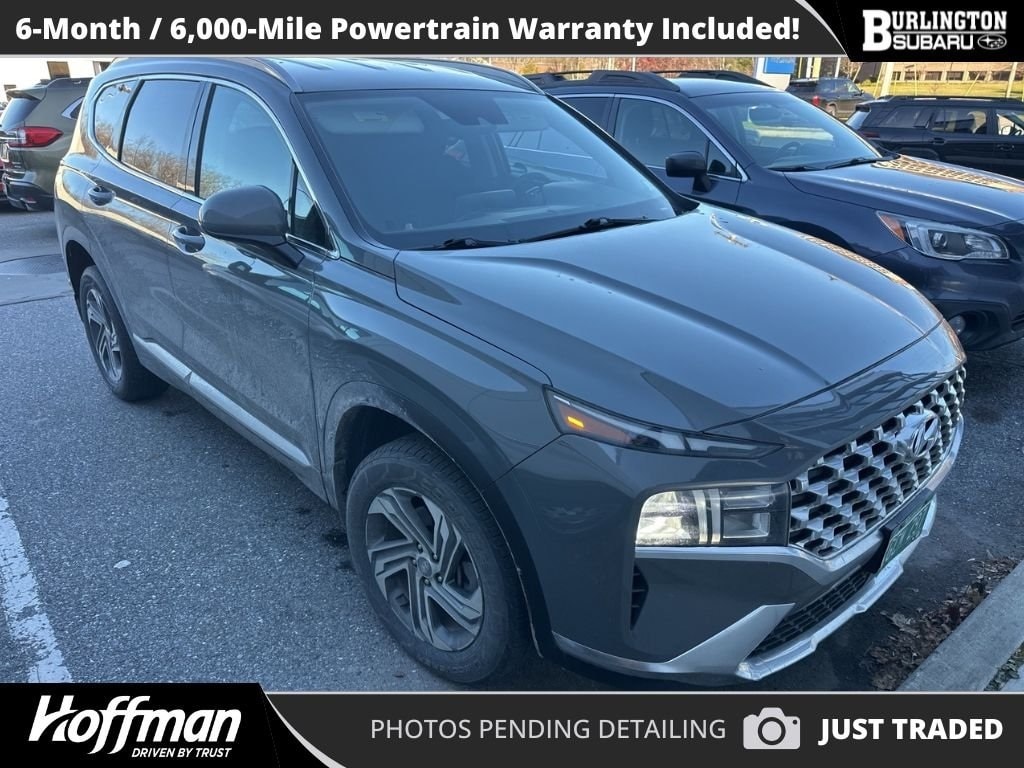 CARFAX One-Owner. Clean CARFAX. Hyundai Santa Fe SEL 2021 4-Wheel Disc Brakes, ABS brakes, Air Conditioning, Alloy wheels, Apple CarPlay & Android Auto, Auto High-beam Headlights, Brake assist, Delay-off headlights, Driver vanity mirror, Dual front impact airbags, Dual front side impact airbags, Electronic Stability Control, Emergency communication system, Exterior Parking Camera Rear, Four wheel independent suspension, Front reading lights, Fully automatic headlights, Heated door mirrors, Heated Front Bucket Seats, Illuminated entry, Low tire pressure warning, Occupant sensing airbag, Outside temperature display, Overhead airbag, Overhead console, Panic alarm, Passenger vanity mirror, Power driver seat, Power steering, Power windows, Radio: AM/FM/MP3 Display Audio, Rear seat center armrest, Rear window defroster, Rear window wiper, Remote keyless entry, Speed control, Speed-sensing steering, Split folding rear seat, Steering wheel mounted audio controls, Tachometer, Telescoping steering wheel, Tilt steering wheel, Traction control, Trip computer, Variably intermittent wipers, YES Essentials Stain-Resistant Cloth Seat Trim.