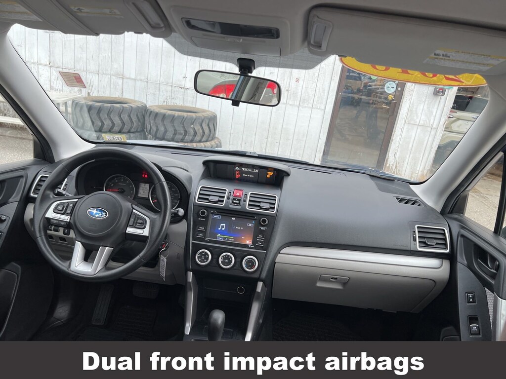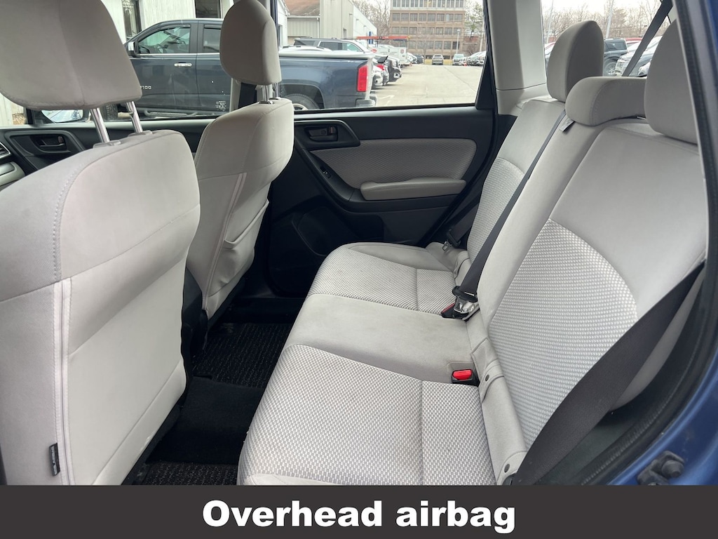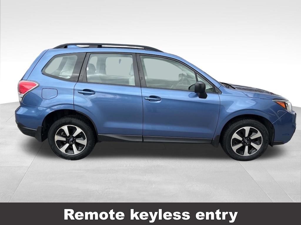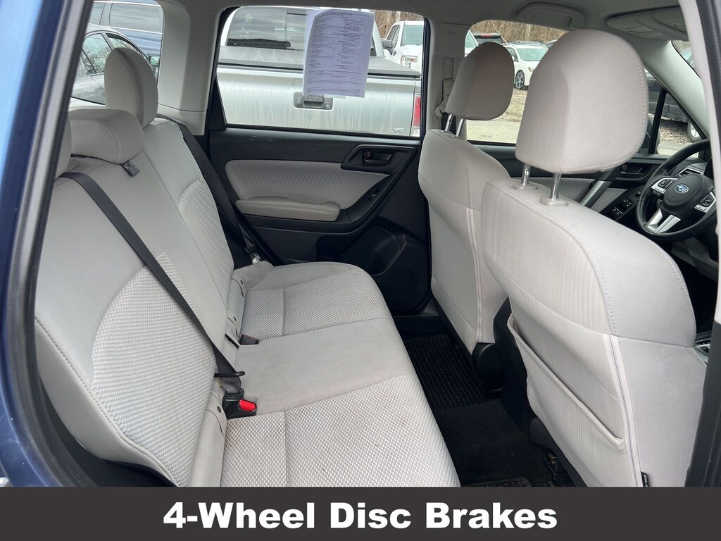 Clean CARFAX. Subaru Forester 2.5i 2018 4-Wheel Disc Brakes, ABS brakes, Air Conditioning, Alloy Wheel Package, AM/FM radio, Black Finish Roof Rails, Brake assist, CD player, Driver vanity mirror, Dual front impact airbags, Dual front side impact airbags, Electronic Stability Control, Emergency communication system: STARLINK, Exterior Parking Camera Rear, Four wheel independent suspension, Front Bucket Seats, Front reading lights, Illuminated entry, Knee airbag, Low tire pressure warning, Occupant sensing airbag, Outside temperature display, Overhead airbag, Panic alarm, Passenger vanity mirror, Power door mirrors, Power steering, Power windows, Radio: Subaru Starlink 6.2" Multimedia System, Rear window defroster, Rear window wiper, Remote keyless entry, Speed control, Split folding rear seat, Steering wheel mounted audio controls, Tachometer, Telescoping steering wheel, Tilt steering wheel, Traction control, Trip computer, Variably intermittent wipers, Wheels: 17" x 7.0J Black Machine Finish Alloy.