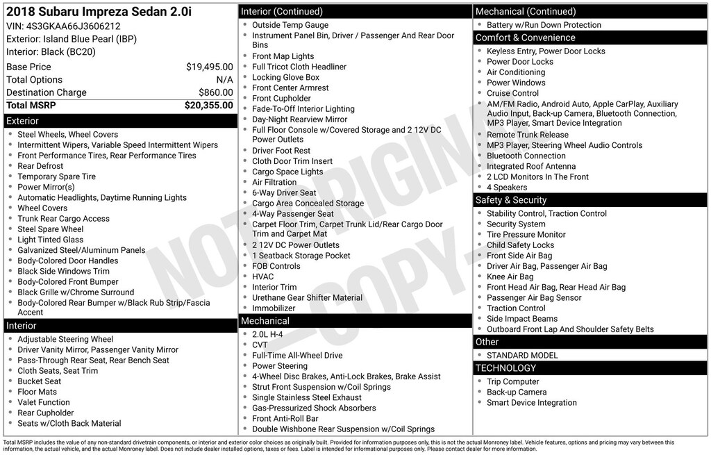 2018 Subaru Impreza 2.0i Sedan