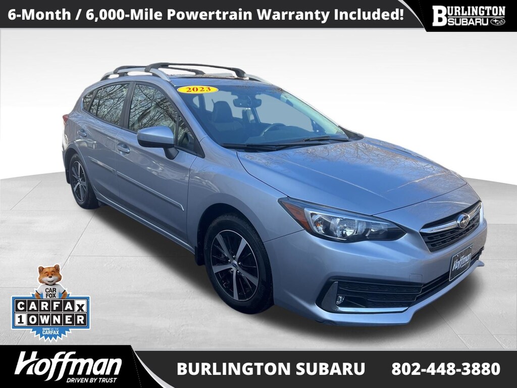 CARFAX One-Owner. Clean CARFAX. Subaru Impreza Premium 2023 4-Wheel Disc Brakes, 6-Way Power Driver's Seat, ABS brakes, Air Conditioning, Alloy wheels, AM/FM radio: SiriusXM, Anti-whiplash front head restraints, Blind Spot Detection (BSD), Brake assist, BSD/RCTA & Moonrf & Keyless Access & Pwr Dr. Seat, CD player, Delay-off headlights, Driver vanity mirror, Dual front impact airbags, Dual front side impact airbags, Dual-Illuminated Visor Vanity Mirror, Electronic Stability Control, Emergency communication system, Exterior Parking Camera Rear, Four wheel independent suspension, Front fog lights, Front reading lights, Fully automatic headlights, Heated Front Bucket Seats, Illuminated entry, Keyless Access w/Push-Button Start, Knee airbag, Low tire pressure warning, Occupant sensing airbag, Outside temperature display, Overhead airbag, Panic alarm, Passenger vanity mirror, Power door mirrors, Power Moonroof, Power steering, Power windows, Rear Cross-Traffic Alert (RCTA) System, Rear window defroster, Rear window wiper, Remote keyless entry, Speed control, Speed-sensing steering, Split folding rear seat, STARLINK/Apple CarPlay/Android Auto, Steering wheel mounted audio controls, Tachometer, Telescoping steering wheel, Tilt steering wheel, Traction control, Trip computer, Variably intermittent wipers. Odometer is 13123 miles below market average!