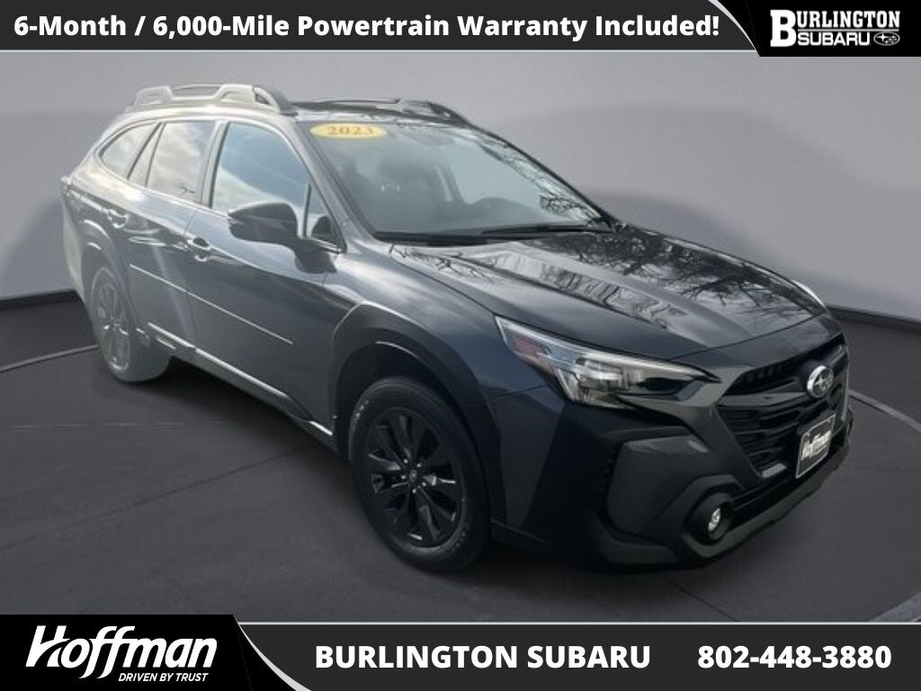 CARFAX One-Owner. Clean CARFAX. Subaru Outback Onyx Edition 2023 4-Wheel Disc Brakes, ABS brakes, Air Conditioning, Alloy wheels, Auto High-beam Headlights, Auto-dimming Rear-View mirror, Automatic temperature control, Brake assist, Compass, Driver vanity mirror, Dual front impact airbags, Dual front side impact airbags, Electronic Stability Control, Emergency communication system: STARLINK Safety Plus (3-year free trial), Exterior Parking Camera Rear, Four wheel independent suspension, Front dual zone A/C, Front fog lights, Front reading lights, Fully automatic headlights, Garage door transmitter: HomeLink, Heated door mirrors, Heated Front Bucket Seats, Illuminated entry, Knee airbag, Leather Shift Knob, Leather steering wheel, Low tire pressure warning, Occupant sensing airbag, Outside temperature display, Overhead airbag, Overhead console, Panic alarm, Passenger vanity mirror, Power door mirrors, Power driver seat, Power Liftgate, Power Moonroof, Power Moonroof & Navigation & RAB, Power steering, Power windows, Radio: Subaru STARLINK 11.6" Multimedia Nav System, Rear window defroster, Rear window wiper, Remote keyless entry, Reverse Automatic Braking (RAB) System, Speed control, Speed-sensing steering, Split folding rear seat, StarTex-Trimmed Upholstery, Steering wheel mounted audio controls, Steering Wheel Paddle Shift Control Switches, Tachometer, Telescoping steering wheel, Tilt steering wheel, Traction control, Trip computer, Turn signal indicator mirrors, Variably intermittent wipers. Odometer is 4933 miles below market average!