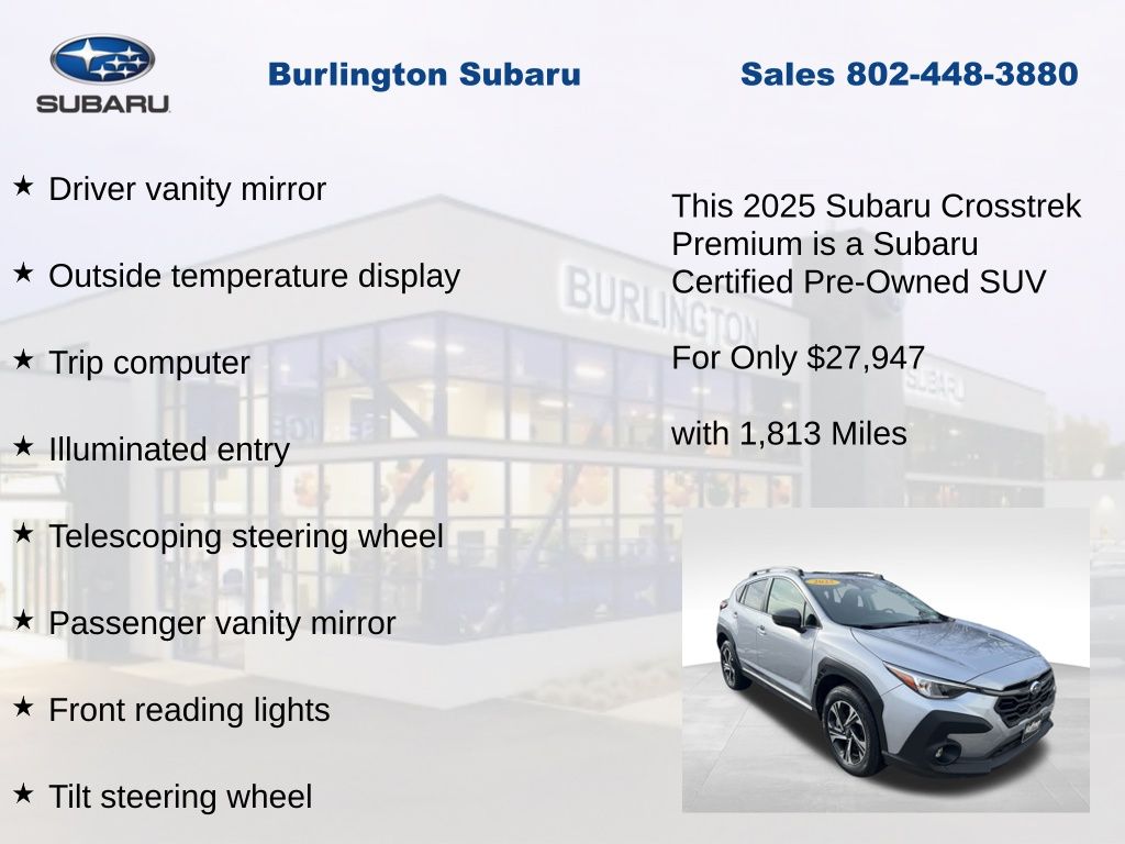 27/33 City/Highway MPG Burlington Subaru Hyundai is proud to be Burlington's premier dealership for new and used vehicles, servicing Vermont for over 25 years. In addition to a large inventory new and used Hyundai and Subaru vehicles, we also carry an extensive selection of other makes including Audi, BMW, Chevy, Chrysler, Dodge, Ford, GMC, Honda, Jeep, Nissan, Saturn, Scion, VW and more! Come test drive one today! Our friendly and experienced staff is ready to help you find your next new or used vehicle.